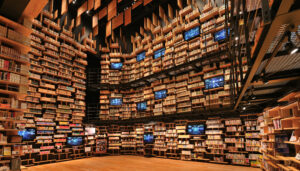 「本と遊び、本と交わる」をテーマにした本棚劇場では、360度を取り囲む高さ約8メートルの巨大本棚に、